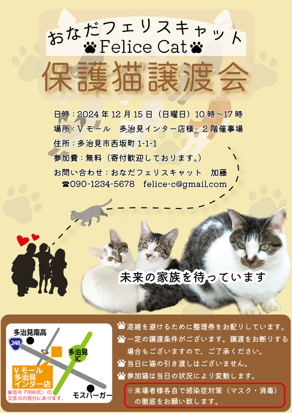 架空の保護猫譲渡会のチラシです。